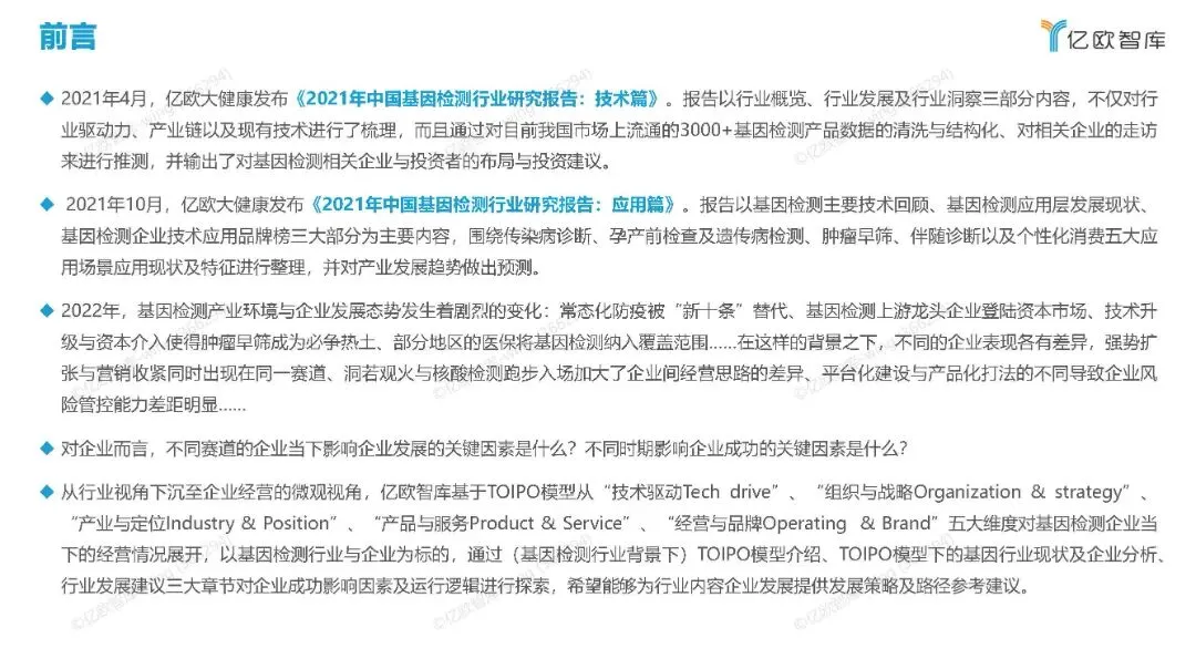 欲获取完整版《2022年中国基因检测创新企业战略路径评估报告》,请扫描上方二维码,关注本公众号并回复关键字“2022基因检测”,即可获取!