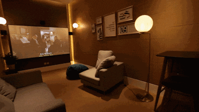 家庭影院及娱乐系统,主要是对影音娱乐设备的调控。一套智能影音系统能带给业主对音乐、K歌、游戏、观影等全方位娱乐享受,实现沉浸式娱乐体验,逐渐成为现代家庭装修的新贵和标配。