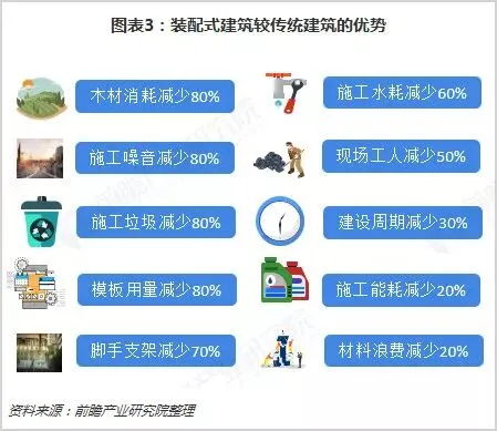 相对于传统现浇建筑,装配式建筑可缩短施工周期25-30%,节水50-60%,节约木材约80%,降低施工能耗约20%,减少建筑垃圾70%-80%,并显著降低施工粉尘和噪声污染。