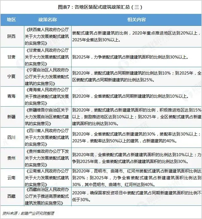 在甘肃、宁夏、青海等地区,由于受到经济条件和发展基础的限制,当地政府在发展政策中提出了2020年装配式建筑占新建建筑面积的比例达到10%,符合国家发展要求,同时也有效切合了当地实际情况。