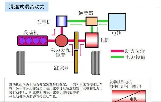 根据混合动力驱动的动力传输路线分类,可将HEV分为串联式、并联式和混联式3种: