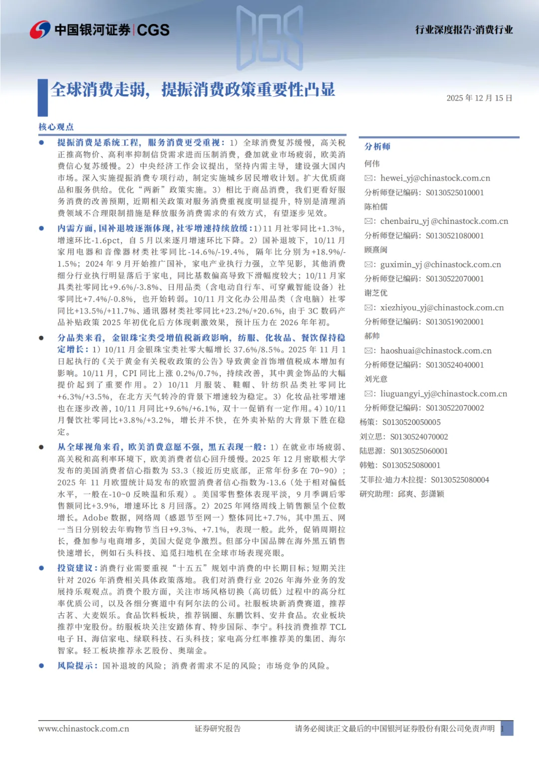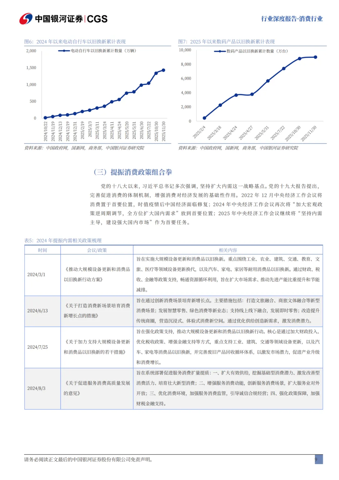 国内方面,提振消费成为重要议题,相关政策密集出台且持续优化。2024年起实施的大规模设备更新和消费品以旧换新政策效果显著,带动汽车、家电等多个品类销售额增长。2025年政策进一步扩围,新增数码产品补贴,扩大家电、汽车补贴适用范围,财政支持力度持续加大,1-11月消费品以旧换新带动相关商品销售额超2.5万亿元,惠及超3.6亿人次。同时,政策重点关注服务消费,清理不合理限制措施以释放需求。