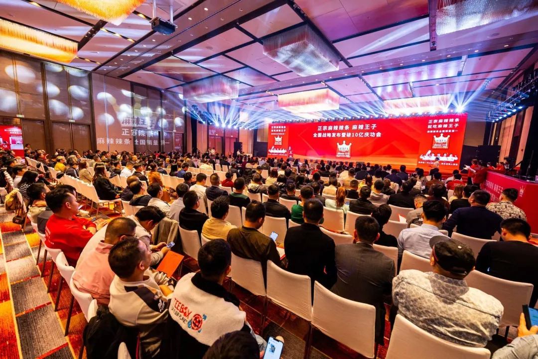 整场庆功会有两点值得关注:一是麻辣王子年度销售额超10亿,了解零食快消行业的都知道单品破10亿是什么概念。二是麻辣王子宣布进军全国市场,吹响了从区域品牌向全国品牌进军的号角。