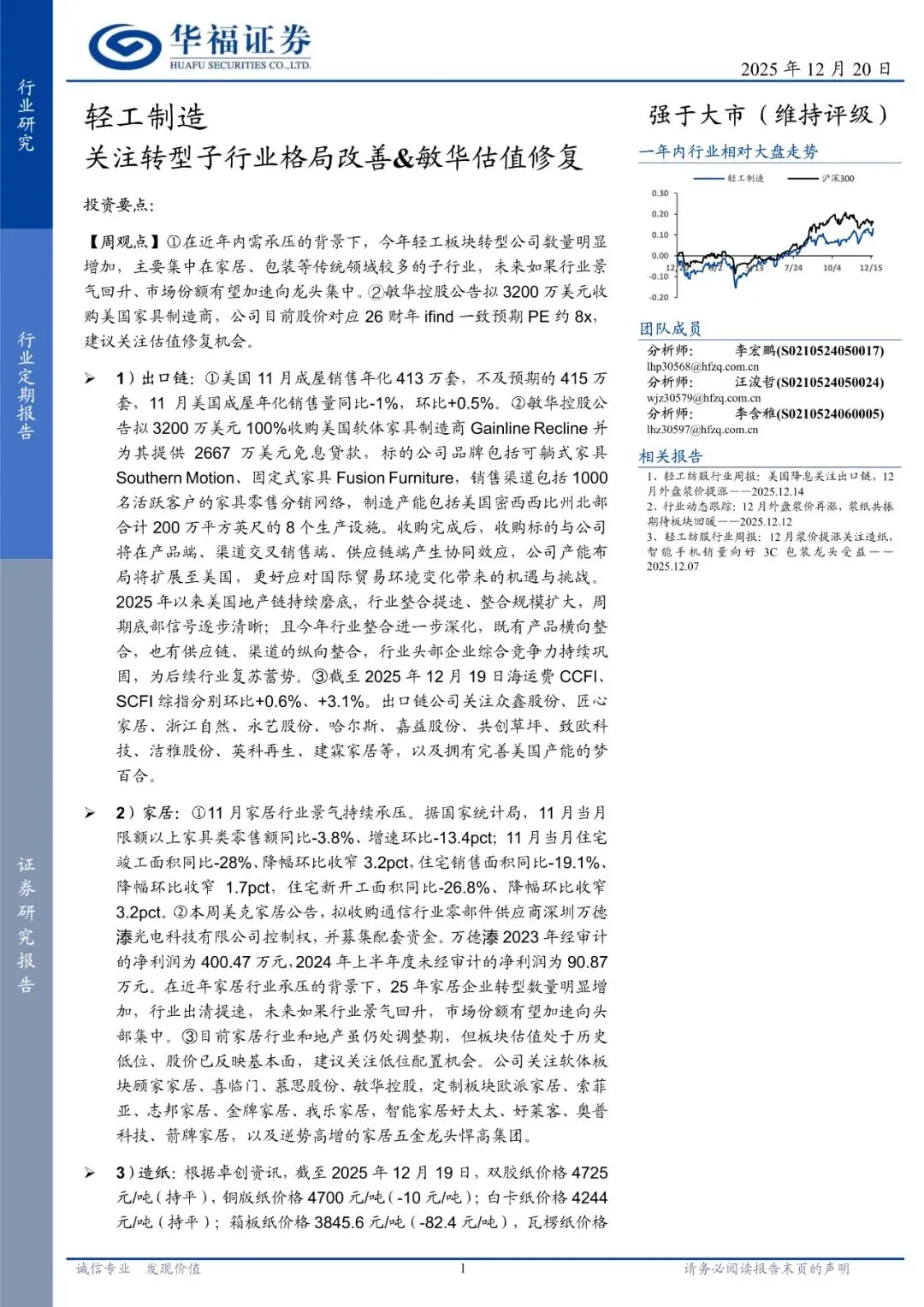 轻工制造行业定期报告:关注转型子行业格局改善%26敏华估值修复-251220-华福证券-20页