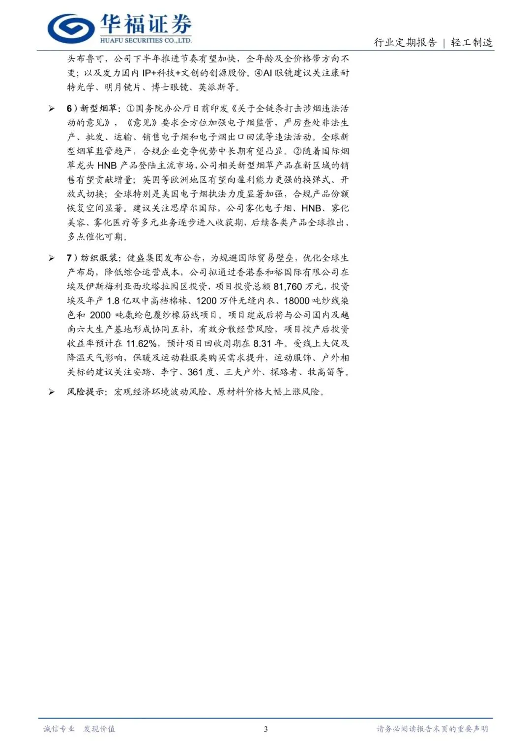 ①在近年内需承压的背景下,今年轻工板块转型公司数量明显增加,主要集中在家居、包装等传统领域较多的子行业,未来如果行业景气回升、市场份额有望加速向龙头集中。