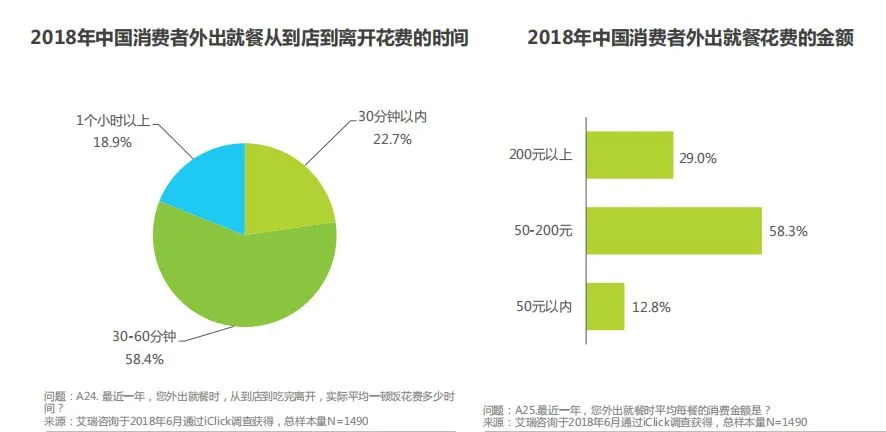 报告中还提到8成消费者外出就餐时间在60分钟内,过半消费支出控制在50-200元之间。