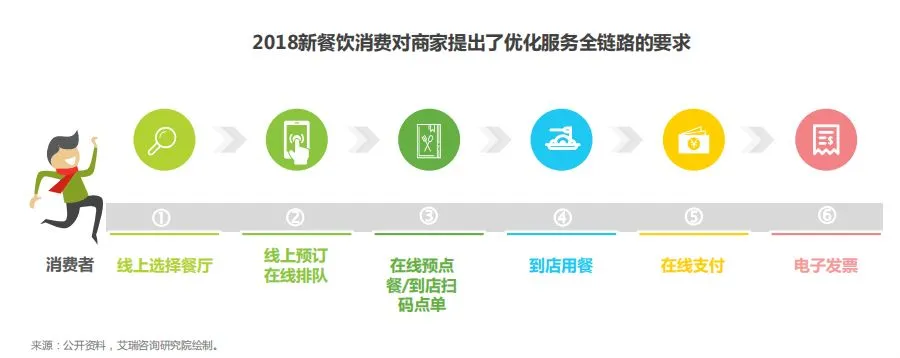 另外报告还整理出这一年随着消费方式的改变,人们外出就餐的6步骤: