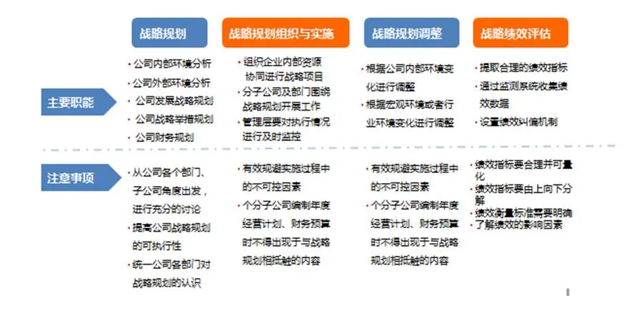 战略管理体系是战略落地的重要保障,公司需制定战略实施方案,并对战略执行情况进行监控,建立战略绩效评价机制。