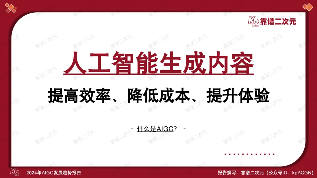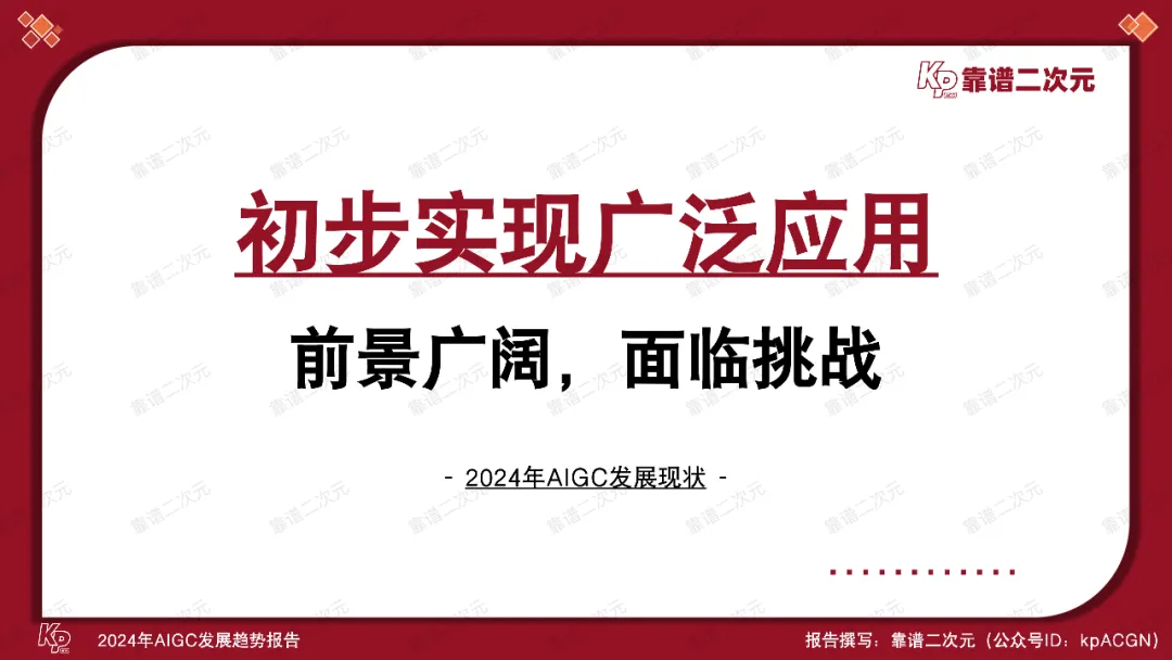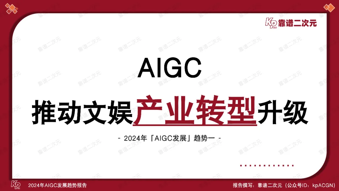 2024年5月,我们重新梳理了现阶段泛娱乐产业——包括动漫、游戏、影视产业相关的AIGC技术发展现状,并对常用工具做出了盘点,综合行业内的认知与展望,出品了这份《2024年AIGC发展趋势报告》,并通过本文进行详细解读,以其为业界后续在AIGC投入及应用方面提供新参考。