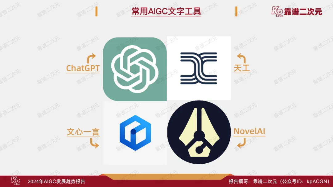 下面我们将从文字、图像、音频、视频、办公五个方向切入,例举现阶段AIGC常用的工具,并选择一款进行详细介绍。