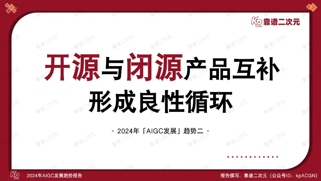 这种互补的关系创建了一个良性循环,不仅推动了技术的快速发展,也帮助商用AIGC产品逐步成熟。在这个过程中,开源和闭源产品的互动不断提升彼此的价值,共同促进了整个AIGC领域的创新和扩展。