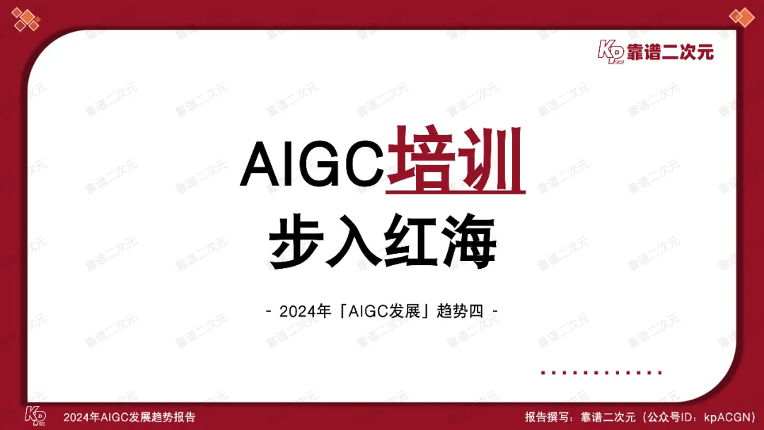 在这种背景下,AIGC培训市场正在迎来竞争激烈的发展阶段。传统培训机构、KOL们都意识到,将AIGC培训作为一种盈利手段具有巨大的潜力。因此,这个领域正逐渐变成一个竞争红海,众多参与者都在努力占据一席之地,希望通过提供高质量的教育内容和服务来吸引并培养更多专业人才。这种趋势不仅显示了市场对AIGC技能的急切需求,也预示着培训领域将快速发展和变革。