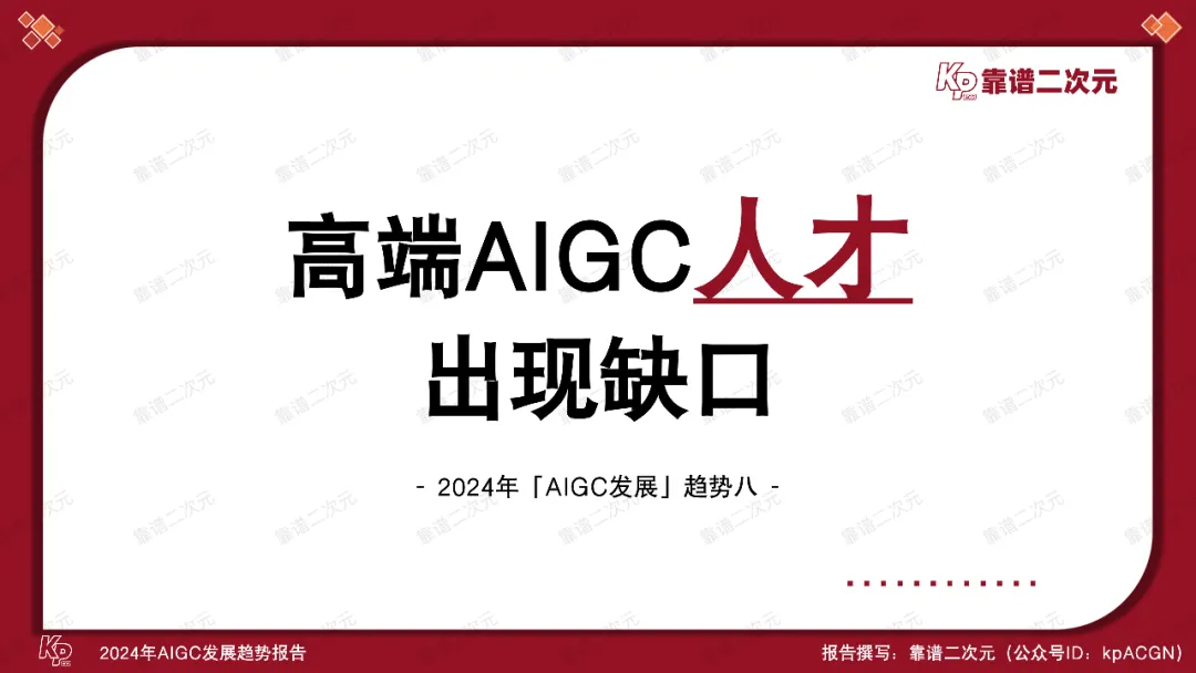 随着2024年更高质量、操作成本更低的AIGC产品陆续推出,市场对于能够熟练运用这些高端工具的人才需求将急剧上升。这些人才不仅需要掌握技术的应用,更要能够创造性地利用这些工具来优化内容创作、提升生产效率,乃至推动新产品的开发。在这样的背景下,具备高级AIGC技能的专家将成为各大企业争抢的宝贵资源。