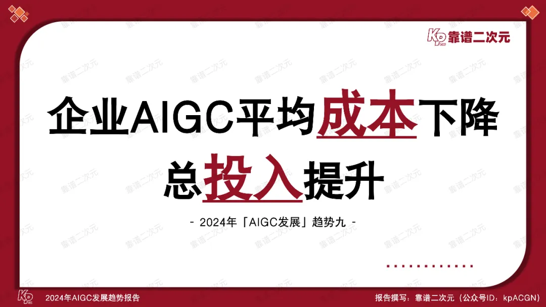 趋势九:企业AIGC平均成本下降,但总投入提升