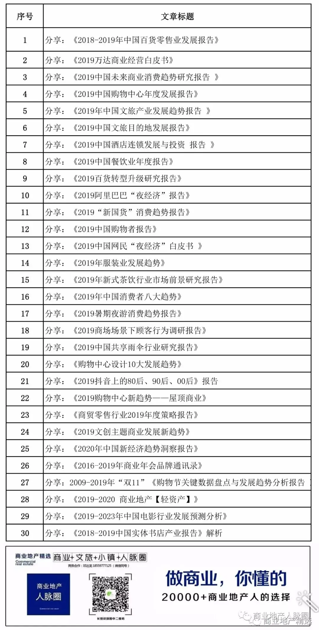 为便于商业地产人员、研究人员查找相关行业研究报告,特将各期研究文章、报告汇总。