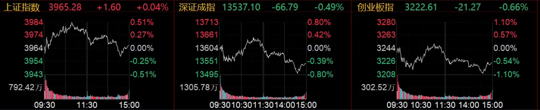 今日A股大小指数分化,沪指录得9连阳。上证指数收涨0.04%报3965.28点,深证成指跌0.49%,创业板指跌0.66%,北证50跌0.45%,科创50涨0.04%,万得全A跌0.29%,万得A500跌0.46%,中证A500跌0.48%。A股全天成交2.16万亿,上日成交2.18万亿。