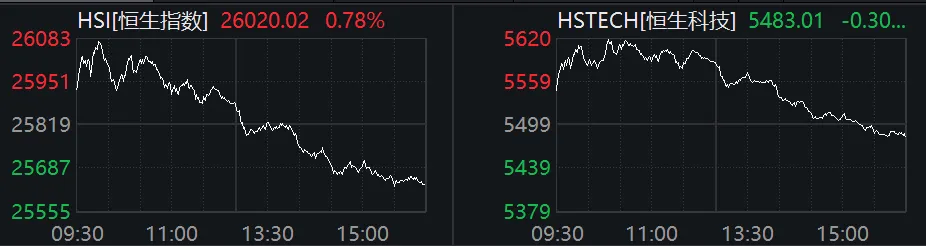 今日港股市场冲高回落,恒生指数收跌0.71%,报25635.23点;恒生科技指数微跌0.30%,报5483.01点;恒生中国企业指数微跌0.26%,报8891.71点。市场成交额2245.08亿港元。恒生指数成分股中,京东健康下跌3.42%,长和下跌3.35%,比亚迪股份上涨3.74%,吉利汽车上涨3.43%。恒生科技指数成分股中,地平线机器人-W下跌3.20%,美的集团下跌3.05%,蔚来-SW上涨4.89%,小鹏汽车-W上涨3.88%。