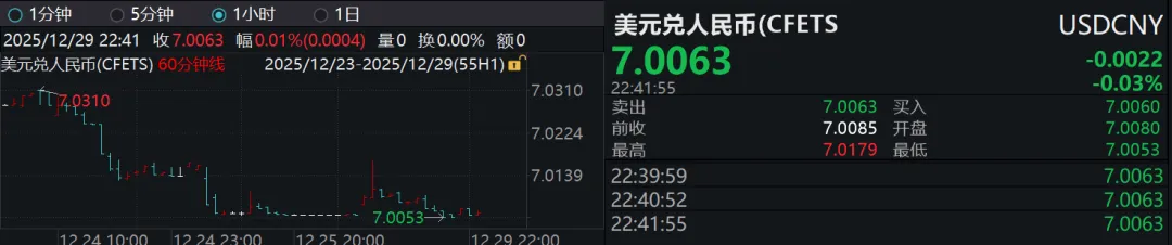 今日在岸人民币对美元16:30收盘报7.0098,较上一交易日下跌13个基点。人民币对美元中间价报7.0331,较上一交易日调升27个基点,刷新2024年9月30日以来最高。