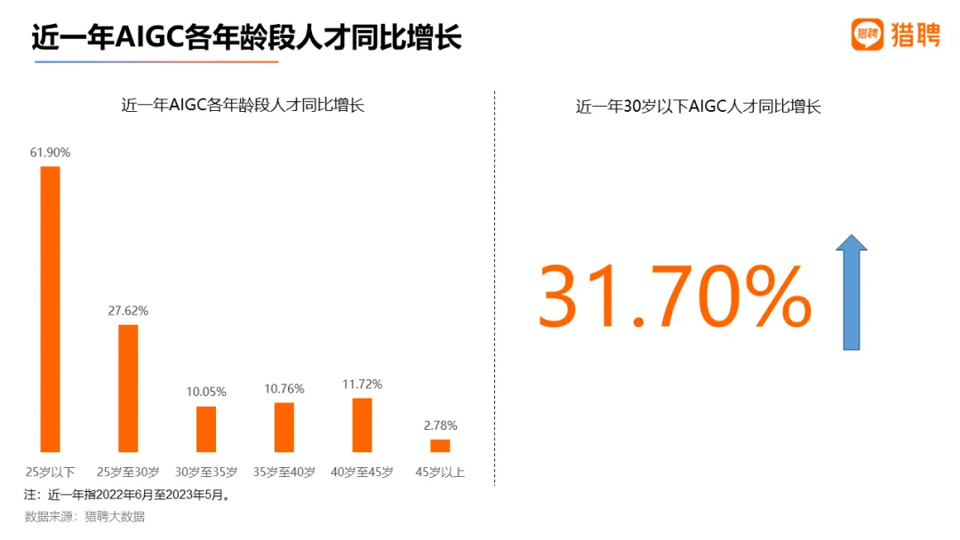1. 近一年AIGC领域25岁以下人才同比增长最多,超60%