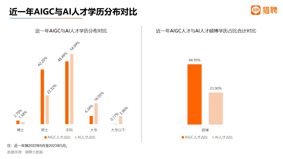 2. AIGC人才学历背景优于AI,硕博占比近45%