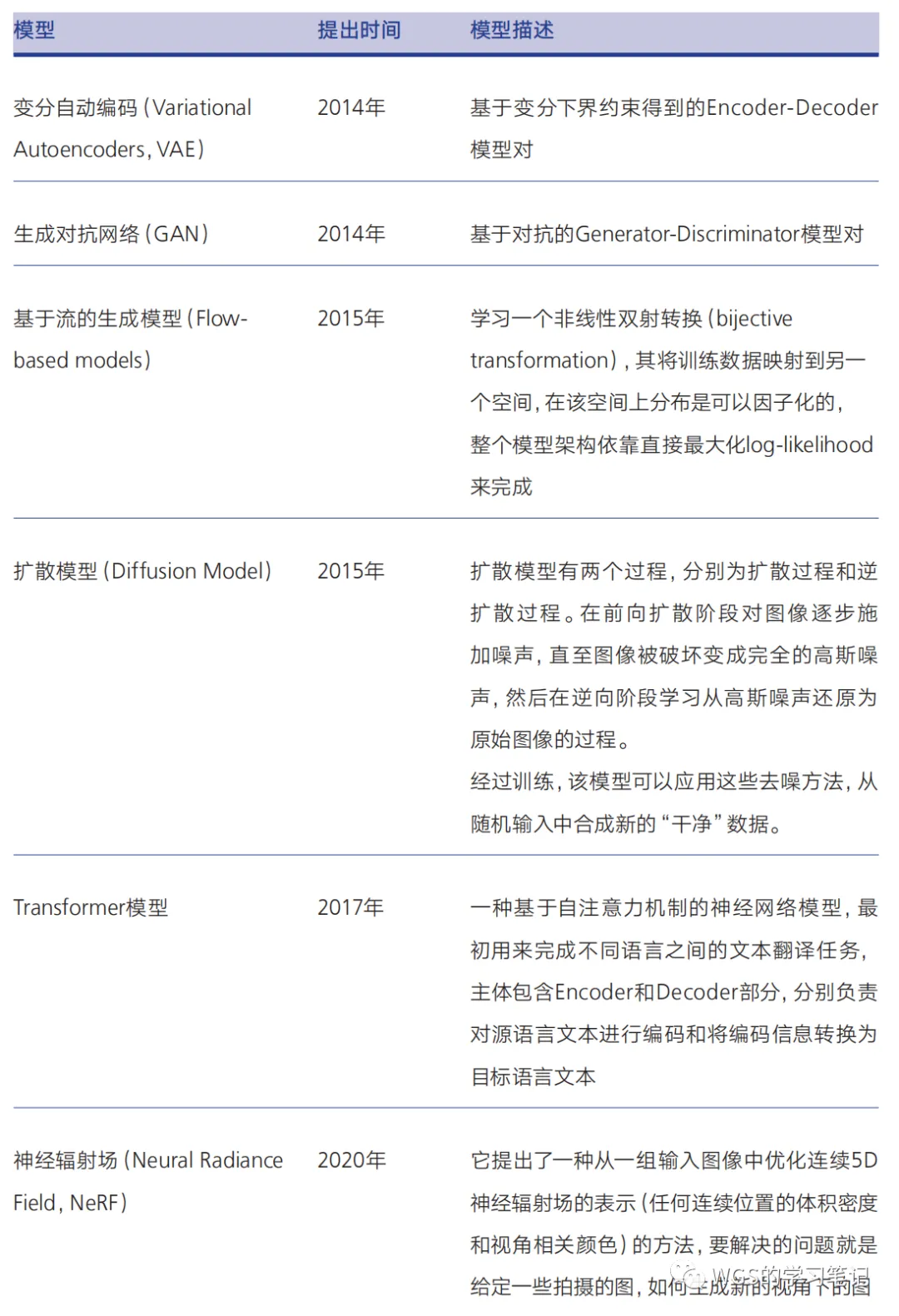 下表为《报告》中给出的生成式算法的演进时间轴: