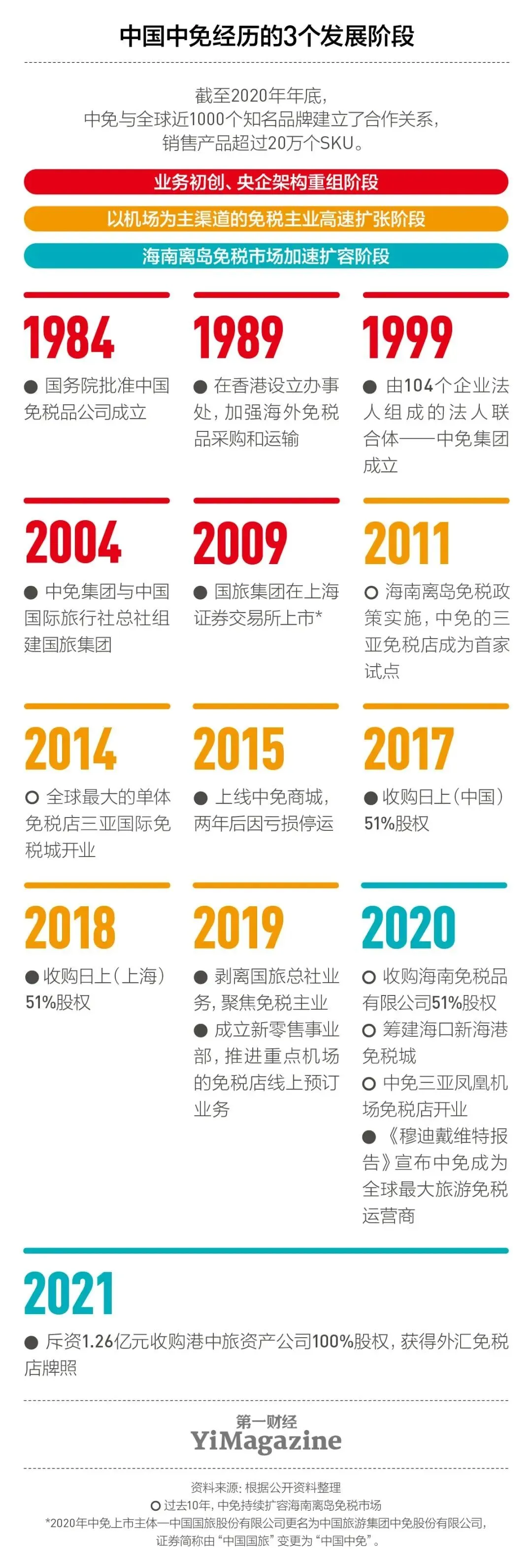 2017年3月,中免以3880万元的价格收购了日上免税行(中国)有限公司51%的股权。2018年2月,它进一步以15亿元拿到了日上免税行(上海)有限公司51%股权。同年10月,海南省国资委将所持有的海南免税品有限公司(以下简称“海免”)51%股权无偿划转给中免的大股东中国旅游集团。随后在2020年,中免上市公司宣布以20.65亿元现金收购中国旅游集团持有的海免公司51%的股权。