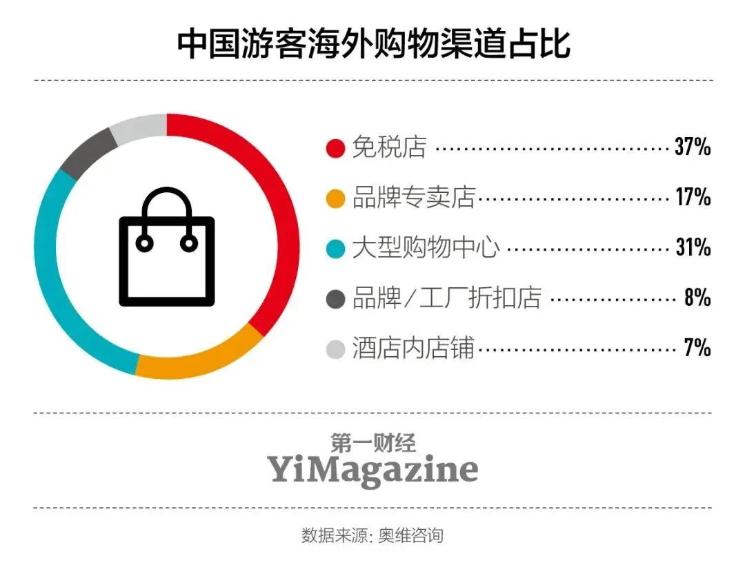 造成商品区域价格差的因素,除了商家主动实施的价格策略,还有一项就是区域税率。根据奥维咨询的数据,中国游客在海外购物时使用最多的渠道就是免税店,占比约37%,其次才是当地的大型购物中心和品牌专卖店等。