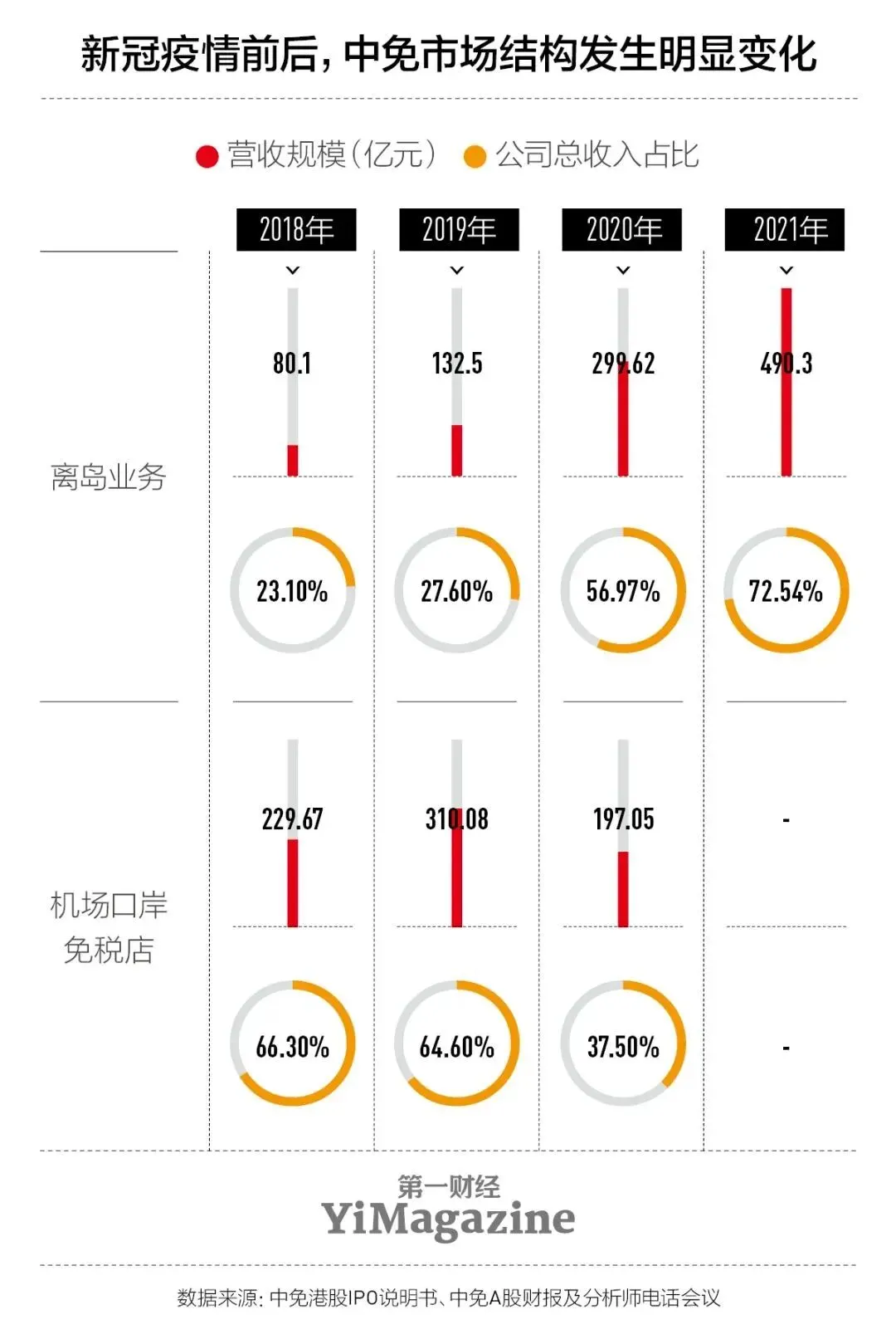 一年之别,中免的主收银台就从几大国际机场搬到了海南。今年1月,中免在针对2021年业绩预报的分析师会议上透露的最新数据是去年离岛业务实现收入490.3亿元,在公司总收入的占比进一步上升至72.54%。