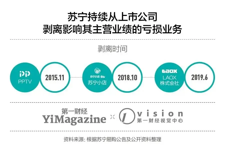 2018年10月苏宁将苏宁小店剥离上市公司体系。剥离前当年1月至7月,苏宁小店营业收入1.4亿元,净亏损2.96亿元。
