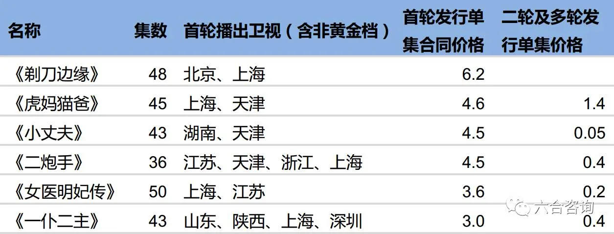 公司持续生产精品电视剧,爆款剧目带动二轮、多轮销售。公司2014~2016年担任执行制片方生产精品电视剧超8部,包括《虎妈猫爸》、《小丈夫》、《女医明妃传》、《一仆二主》等高收视率剧目。2014年《大丈夫》登陆多家卫视黄金档,收视率保持前三,当年国内全部卫视全年黄金时段收视率第5名;2015年《虎妈猫爸》登陆东方卫视、天津卫视,首播期间,每日收视率居同时段电视剧前3名。高收视率带来高发行价格,各大卫视首轮播出后,爆款电视剧在二轮、多轮发行中单集价格明显提升。