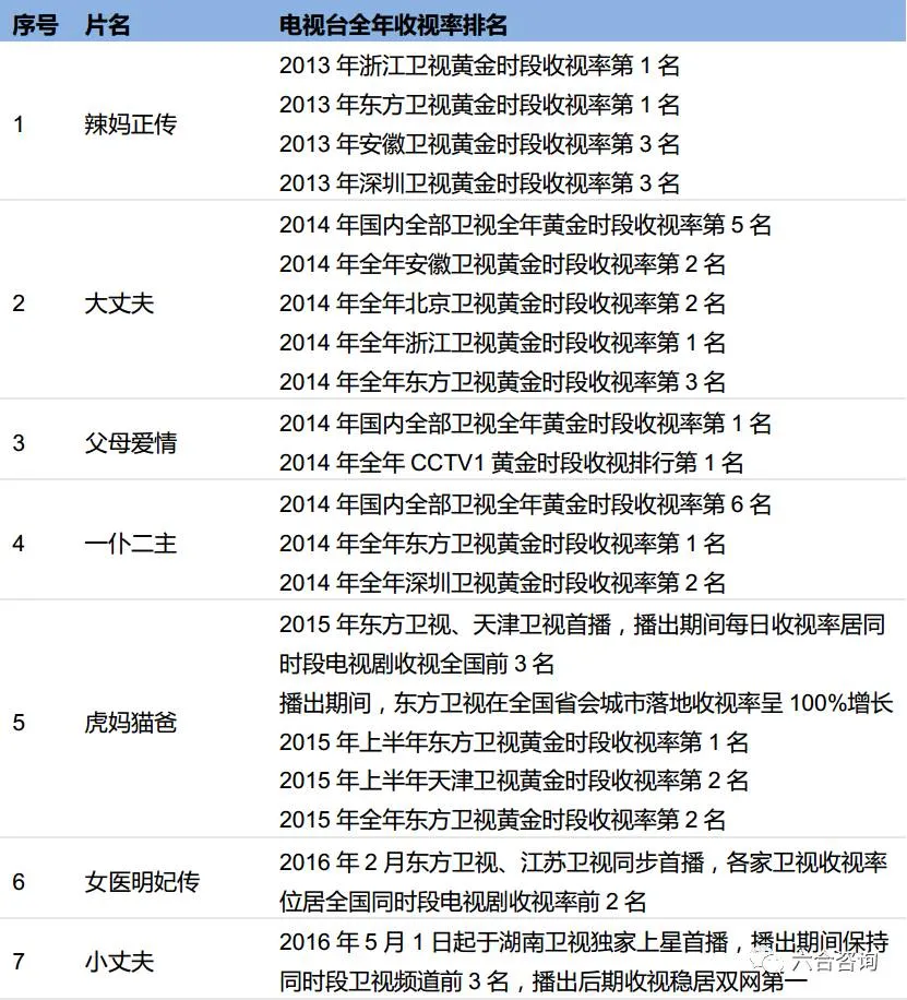 高收视率得益于公司作品深度发酵,从最初创意发展为成熟作品,需要两年或更多的时间。公司通过挖掘持久性话题,判断前瞻性思潮,对观众兴趣品味采用逆向选择的精品项目开发模式,对未来观众审美需求做出预判,题材创新不断更迭,包括故事题材创新、人物情节创新等,避免国内影视剧市场跟风、翻拍盛行、题材重复等现象。