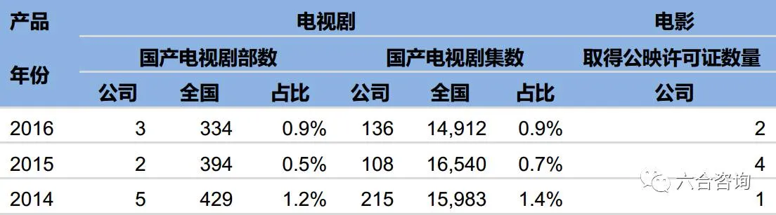 公司2014~2016年担任执行制片生产精品电影4部,累计票房约12.7亿。4部影片分别为《情圣》、《道士下山》、《我的早更女友》、《杜拉拉追婚记》,票房分别为6.59亿、4.01亿、1.62亿、0.49亿。2015年因“两剧一星”政策影响,公司发力电影领域投资布局,担任《煎饼侠》、《夏洛特烦恼》2部电影非执行制片方,2部电影票房均超10亿。