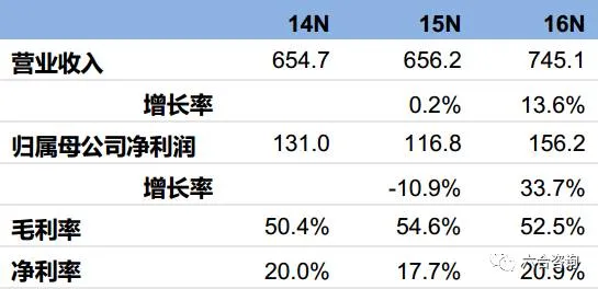 净利率:2014~2016年分别为20.0% 、17.7% 、20.9%。