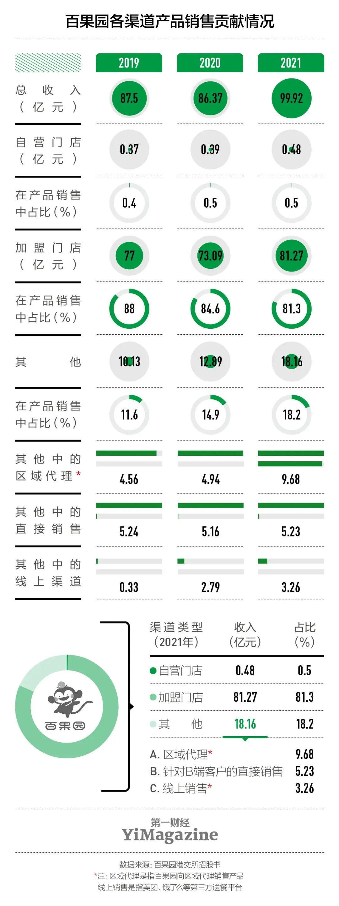 2018年1月,百果园重新开放社会特许加盟,也通过区域代理开拓新市场。百果园的区域代理引入加盟商,也管理区域内的加盟门店,这些区域代理向百果园的供应链、初加工等附属公司订购商品,再向这些区域内的加盟商销售。
