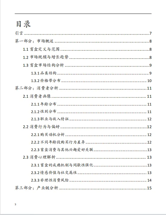 未来,预计 2030 年中国盲盒市场规模将达 850 亿元,产品向功能化、个性化、数字化、高端化演进,消费群体向年龄两端与下沉市场扩展。报告建议企业构建多元 IP 矩阵、深化数字化转型,投资者关注头部企业与技术创新,监管机构平衡规范与创新,共同推动行业从 “惊喜经济” 向 “价值生态” 转型。