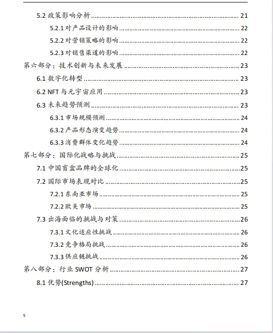 行业 SWOT 分析显示,优势在于情感价值、IP 资源与社区生态,劣势包括产品同质化与非理性消费争议,机会来自功能性市场崛起与全球化空间,威胁则源于政策监管趋严与市场竞争加剧。