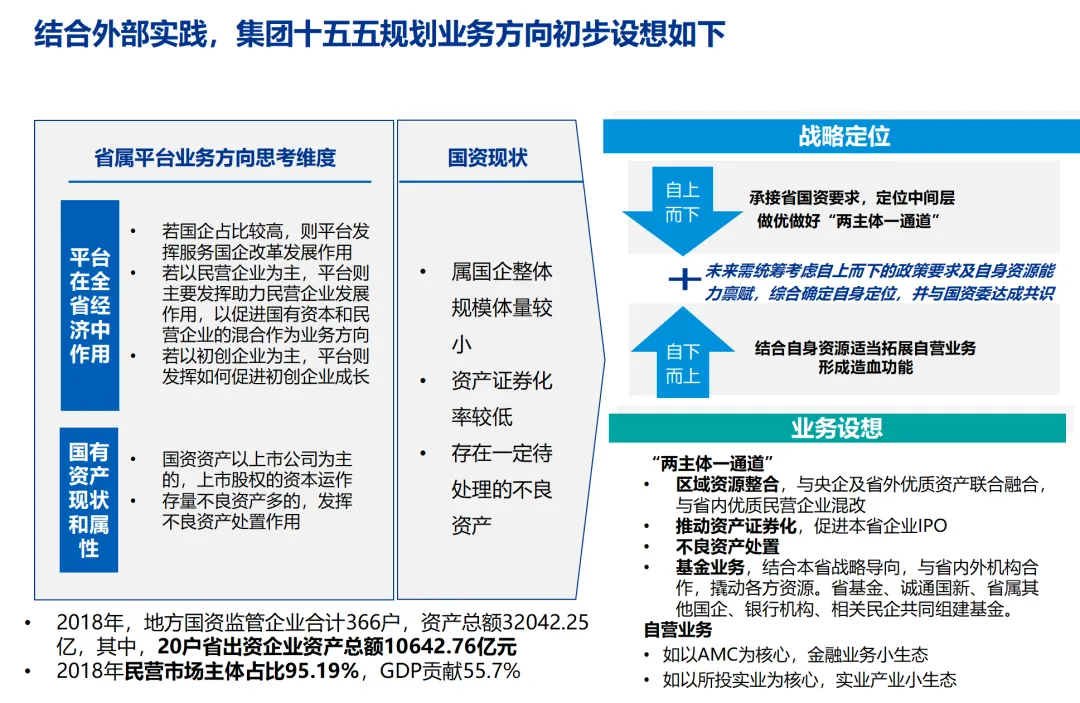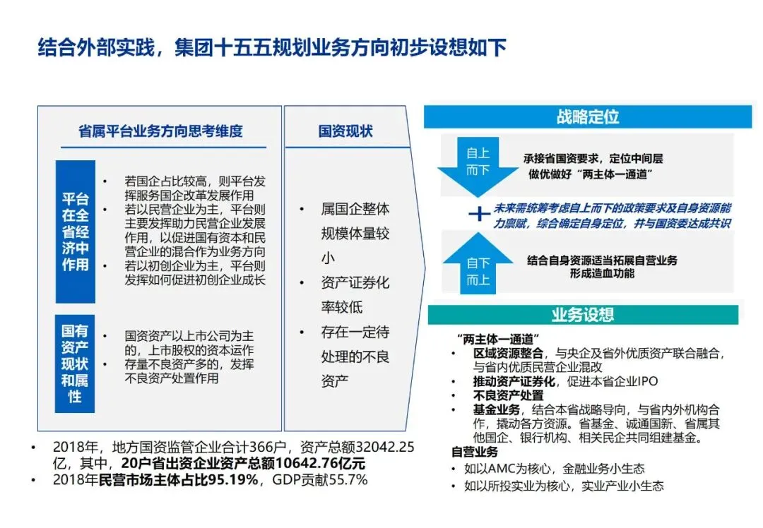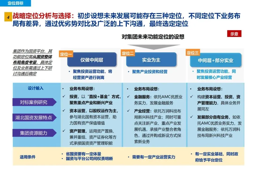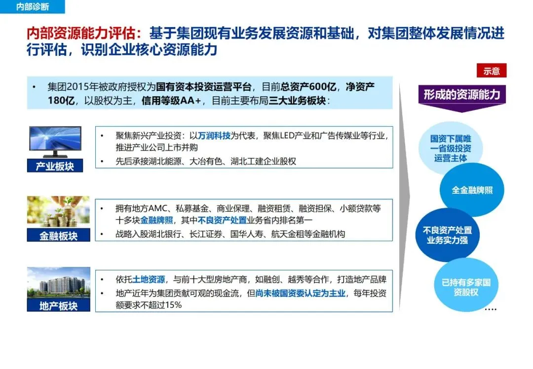 集团准确定位为国家战略实施、区域经济发展、国有资本优化配置、国有企业改革服务的省级国资投资运营平台。这种战略定位,既体现了对国家产业政策的深刻理解,也体现了对企业职能和 value 取向的准确把握。