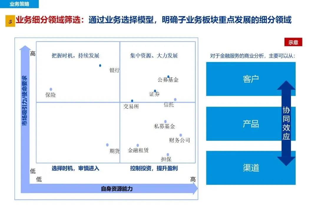 集团的业务包括金融服务,产业投资和资产管理,为了使这些业务产生最大的价值,需要在各个业务之间建立有效的协同机制。