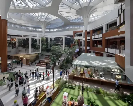 精神文化消费成新刚需,商业空间的公共属性持续强化,2026 年商业地产不再只是消费场所,更变身承载城市公共生活的核心枢纽。开发商主动增加公共空间,打造开放广场、景观走廊、共享书房、社区服务中心等设施,提升项目公共服务能力。