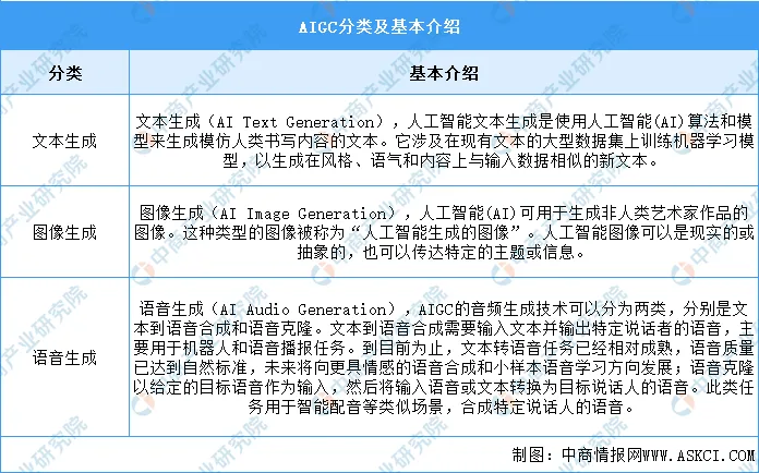 现阶段国内AIGC多以单模型应用的形式出现,主要分为文本生成、图像生成、视频生成、音频生成,其中文本生成成为其他内容生成的基础。具体如图所示: