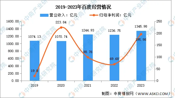 2023年百度营收达1345.98亿元,同比增长8.83%;实现归母净利润195.98亿元,同比增长181.26%。