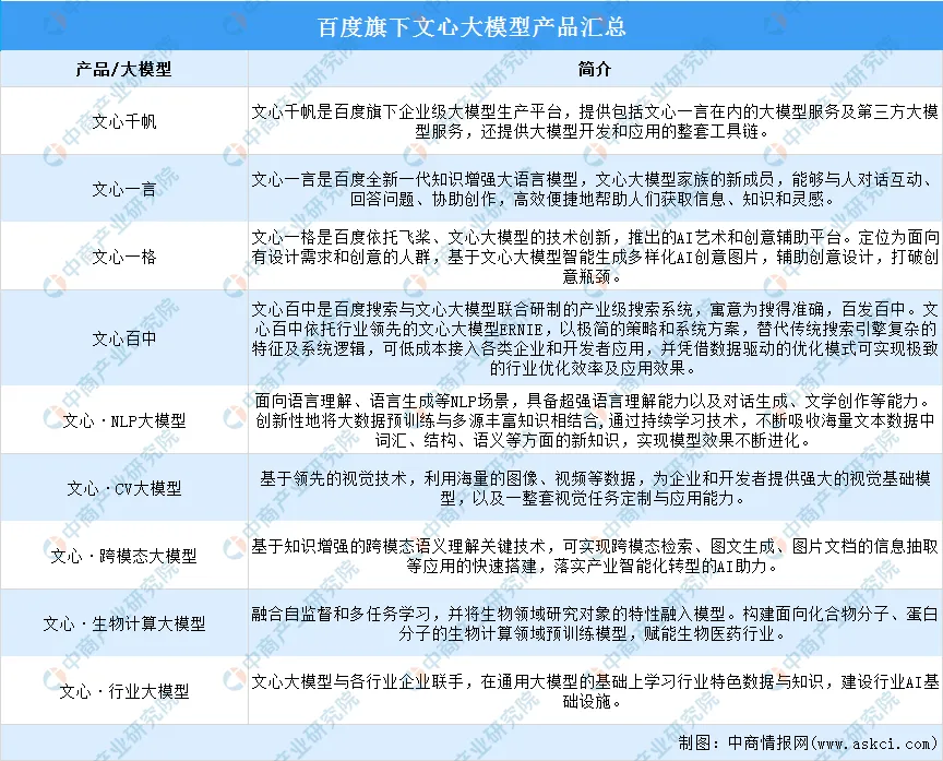 目前,百度文心大模型主打搜索模型,包括文心·NLP大模型、文心·CV大模型、文心·跨模态大模型、文心·生物计算大模型、文心·行业大模型等。2023年,文心一言使用量与文心大模型API调用量均保持高速增长。截至2023年12月底,文心一言用户规模超过1亿。