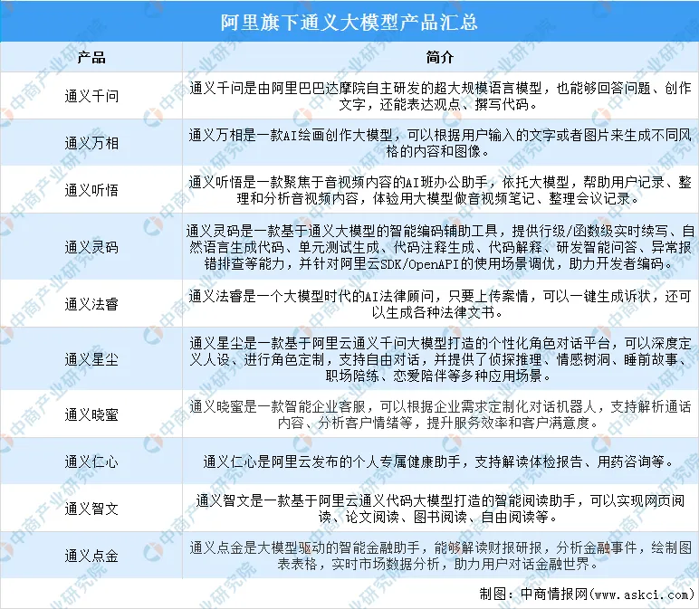 大模型方面,阿里巴巴推出了一个超大规模的语言模型——通义大模型。通义大模型包括通义-M6、通义-AliceMind和通义-CV三大模型体系,可以处理多语言、多模态数据,同时支持多种理解和生成任务,能快速满足不同领域、不同应用场景的需求。2023年10月,阿里云正式发布千亿级参数大模型通义千问2.0,以及基于通义大模型训练的8大行业模型和一站式大模型应用开发平台阿里云百炼、阿里AI平台PAI等。具体情况如下: