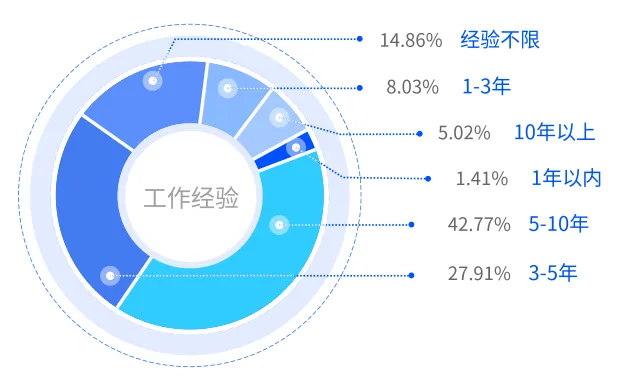 AIGC领域高知人才扎堆,近半数从业者为硕士及以上学历AIGC从业者以本科生居多,但本科、硕士数量差距不大,近半数AIGC人才具备硕士及以上学历。近八成AIGC人才工作经验在3年以上,其中,近半数从业者有5年以上工作经验。