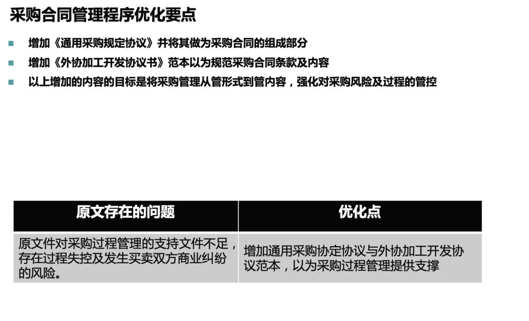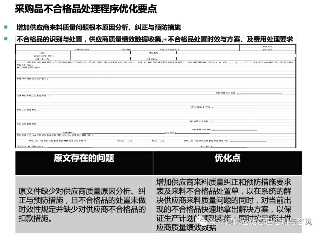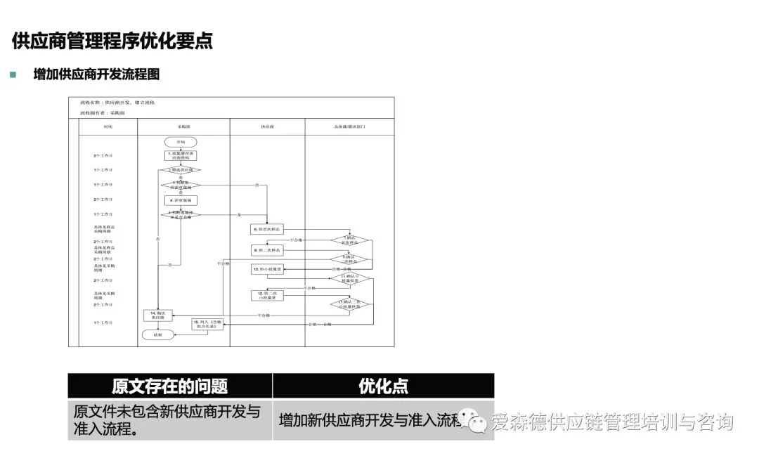 具体的采购行为与供应商寻源与开发统归一个部门管理,从而造成不能及时淘汰绩效差的供应商,优质的供应商无法入围;