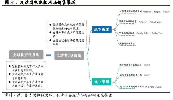 国外宠物用品行业品牌商销售渠道成熟,主要依靠全球采购。