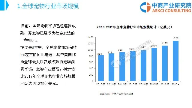 随着社会经济的发展和城市化进程的加速,人们精神生活与物质生活不断改善,社会老龄化步伐加快,独生子女家庭普及等客观因素的突出,人们的休闲、消费和情感寄托方式也呈多样化发展。饲养宠物成为众多家庭的消遣方式,随着宠物需求数量的日益增多,宠物产业也逐渐发展壮大。