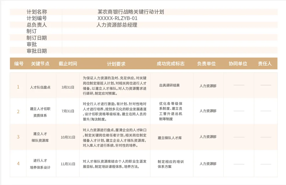 将五年战略目标分解到具体的执行条线部门和年度行动计划,使得战略规划更强调落地性。
