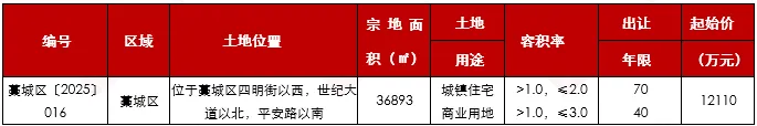 2025年第52周,共供应1宗土地,由藁城区供应,为1宗住宅商服用地,总面积36893平方米,起始总价12110万元。土地详表如下: