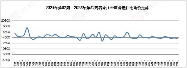 根据世联监测显示,2025年第52周,石家庄全区新建普通住宅均价14146元/㎡,环比下降1%。
